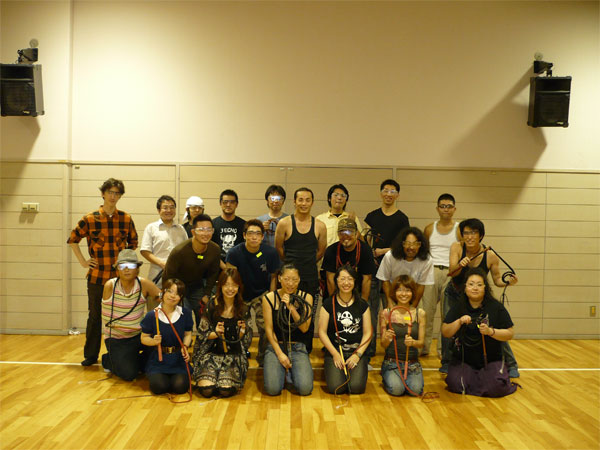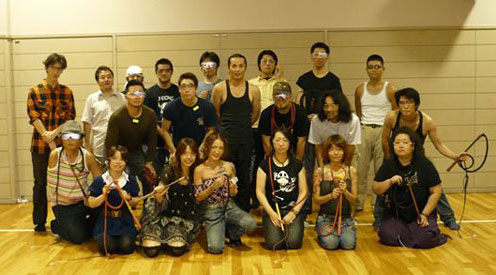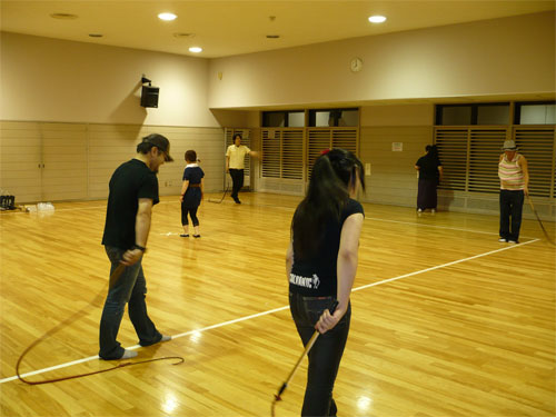 2008年09月01日 第2回 日本鞭競技協会 合同練習会 昨日の31日に日本鞭競技協会の合同練習会が 横浜市南スポーツセンターにて開催されました☆ 今回の合同練習会は 鞭のワークショップの直後ということもあって、 参加人数は25名。 広めのつもりで予約した体育館でも狭いぐらい でした。 忙しい中駆けつけてくれ、協会役員さんも6名参加していました。 ターゲット系の競技練習は 場所をとるのと常連さんが多いこともあってなるべく控えよう! ということになり、まずはついさっきワークショップで作った ストックウィップの練習をしたい!という方を優先することに☆ 協会代表のDio小林氏が真ん中に立ち、 各自ぶつからないように場所をとり ストックウィップを使っての簡単な説明をし、 協会役員の林さんが既に鳴らせる方用に 前後で鳴らす鳴らし方を披露。 練習が始まると、 もう自分の鞭の音なんだか、誰の音なんだかわからないくらい 体育館にパン・パァ~ン☆と、爽快な音が響き渡っていましたw 開始から15分ほどすると、つけたばかりのクラッカーが取れたり、 フォール部分がほつれてしまったり…と、 加藤氏と林さんは補修作業に追われ、 実際の練習で自分で鞭が作れたり直したりできる、ということの 大切さもわかっていただけたかと♪ 協会推奨のカラークラッカー(全15色)を購入し、 早速好きな色を自分の鞭につけて楽しんでいる方もちらほら。 さすがに1時間もクラッキングの練習を続ける人は いないかな?と思って練習スペースが空くのを 待っていても誰一人、バテて練習を止める人がいなくって、 それどころかハンドルを握る手にマメを作ってまでも ひたすら鞭を鳴らし続ける人までいたり・・・ みんな、鞭に夢中で とっても鞭が好きなんだなぁ~と感心(*´ェ`*) 20時を過ぎた頃に一度集合をかけ、 協会の安全指導で使用しているゴーグルをかけて、 みんなで集合写真を☆ この時点でみんな汗だくでしたw 第2回 日本鞭競技協会 合同練習会は 始終皆さん笑顔でケガ人もなく、 大盛況で無事終わりましたァ~ヽ(´∀`)ノ 参加者の皆様、お疲れ様&ありがとうございましたァ~☆ 傍から見ると「何が楽しいの?」て感じなのかもだけれど、 鞭は実際に握って、振って、(的を)落として、鳴らして… 扱ってみるとその奥深さと楽しさの魅力に魅せられちゃうんですよね~♪ それは小さな子供でも、 普段は真面目なお仕事をしている大人の人でも…ってとこが、鞭の魅力です。 日本鞭競技協会では、 鞭を知らない人が鞭に触れ合う機会を作り、 もっともっと鞭を好きな人が増えたらな、と思い これからもどんどんイベントを企画し、盛り上げていきたいと思います。 次回のブログは 今回の合同練習会の前に行なわれた 第1回ムチ作りワークショップの報告をしたいと思います。 記事:林