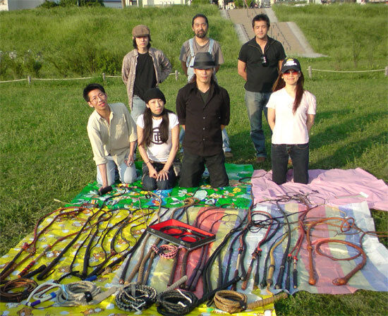 2008年09月23日 第三回合同練習会 今日は日本鞭競技協会の第三回合同練習会でした。 前日の雨のせいもあって中止と勘違いした人も多く 参加人数は少な目となってしまった。 そんな中集まった面々はとっても濃い (ムチに対する熱い思いを持った)メンバーで 参加人数は少ないものの、みんなの持参したムチの数 をあわせると、その3倍、いや5倍以上 ずらりと並んだこの写真を見てくださいw そして、本日参加の女性達で お弁当係、救急係に分かれいろいろ持参してくれたので まるでお花見のような休憩タイム 人数が少ないこともあってグループに割れることなく それぞれのいろんな疑問に、全員が意見を述べたりと これまたすごーく盛り上がった。 ムチの練習の方はと言いますと 芝生がまだ少し濡れている事から全員がクラッキングの 練習。 最近、協会でクラッキングブームなのか それとも今日集まったメンバーが、たまたまだったのか 全員がそこそこの腕前!! 参加人数が少ないながらも記録の計測会も行った。 世界的に、最近のクラッキング競技では もう暗黙の常識となりつつある技 ボレー(前後で高速で音のなる振り方) ちょっとばかし難しい技なのにも関わらず 今回の参加者の大半ができてるのには驚きました!! みんな相当、練習してるねー それで計測の結果は 練習で目安とする基準値 (これぐらいを越えれるように練習しようという数) ボレー(片手) 5ft(約150cm) 180回/1分間 8ft(約240cm) 100回/1分間 今回の最高記録 ボレー(片手) 5ft(約150cm) 205回/1分間 8ft(約240cm) 123回/1分間 てな感じでした。 あくまで練習の目安としてなので、記録更新とかに 熱くなりすぎず楽しく振ること第一に心がけて練習に 励んでください。 計測に協力してくれた皆さんありがとうございました。 そして 今回から会員さんの意見で 新しく取り入れることとなった救急係なのですが 早速活躍の場がありました!! と言っても心配するような事故とかではなく 熱心に練習するあまり手のマメがつぶれる人がいた 程度なんですが、救急係のおかげでとても助かりました。 あとは 記録係としてカメラマンがいてくれると助かりますね。 毎回レポートを書くときに、現場の楽しさの全てを 伝える写真の数が少なくて困っちゃいます。 みんな写真撮るよりムチ振りたい人ばかりだから しかたないんだけど、毎回係りを決めてちゃんと記録 していけたら良いですね。 あっ!! そうそう、今日はこんな話もありましたね 協会のメンバーでクラッキング音楽隊を 結成しようという話も出ました。 これはぜひ実現して欲しいよねー 楽しみ それと他には、今日参加のムチコレクターさんが 近々新たにムチを購入するという情報も入手できました。 これも今後の合同練習で披露目してくれるのが楽しみです。 今日はこんな感じで少人数ですが とっても盛り上がった合同練習会でした。 参加者の皆さんおつかれさまでーす。 記事 : Dio Kobayashi