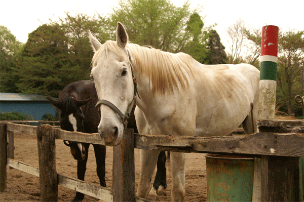 「この馬わぁ~、フランスの馬で~す。だからフランス語しかわからなぁ~い」
