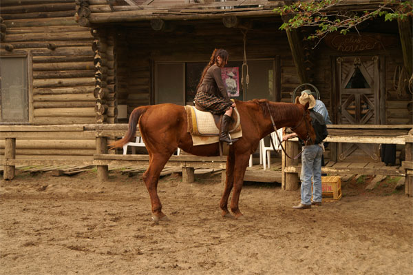 ピンヒールブーツにロングスカート、と乗馬する格好ではなかったので